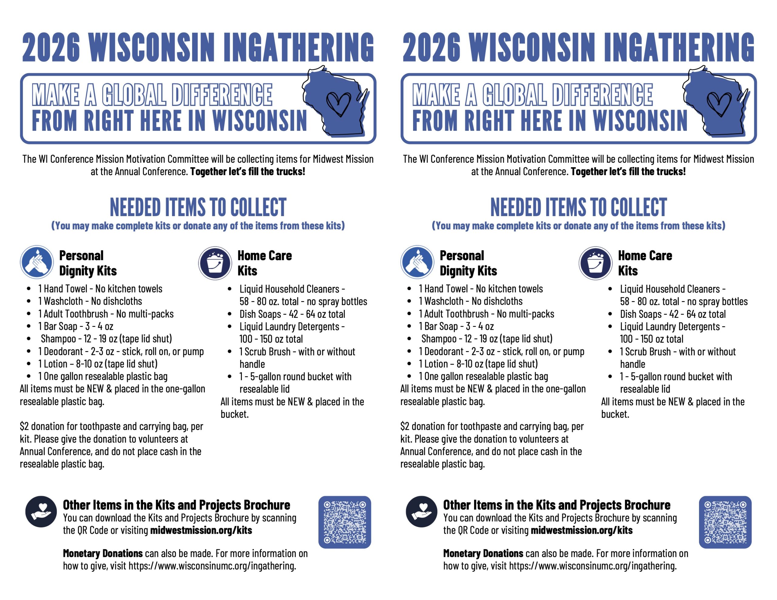 We are collecting supplies for Personal Dignity Kits and Home Care Kits. We have lots of toothbrushes, so no need to buy those. We also have a couple of buckets just waiting to be filled. Don’t want to shop, we can take donations and will do the shopping for you. Click here for a pdf of the flyer.